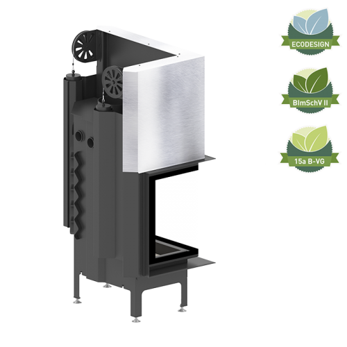 Die beliebteste Kaminserie im Angebot. Viele Optionen zur Anpassung des Aussehens: Griff, Zierblenden, schwarzer Beton. Bewährtes System zur Reinigung der Glasscheibe. Kamineinsatz für Wärmerückgewinnung geeignet