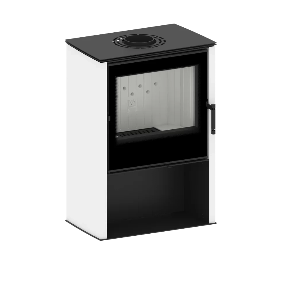 Umweltfreundlicher und effizienter Kaminofen LUPO M mit weißen Seiten.