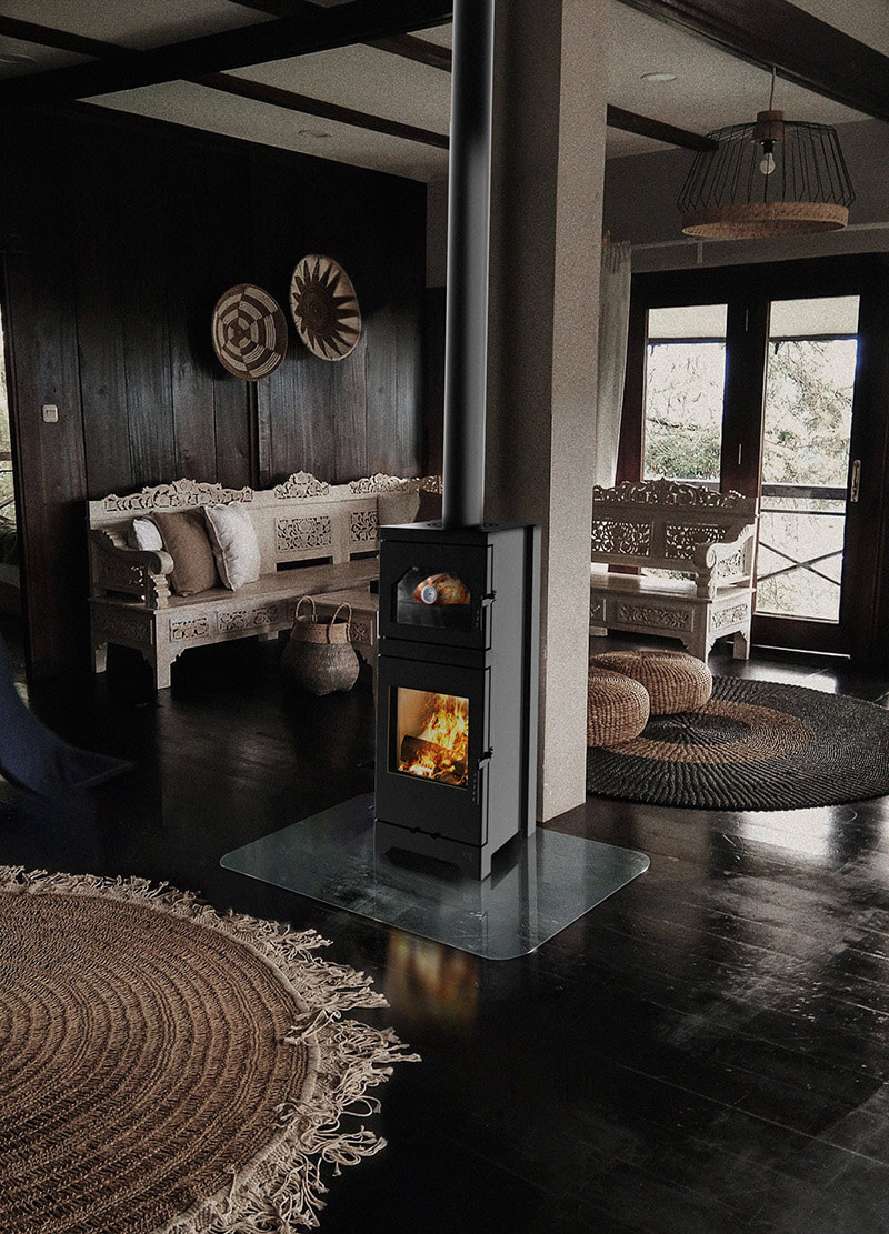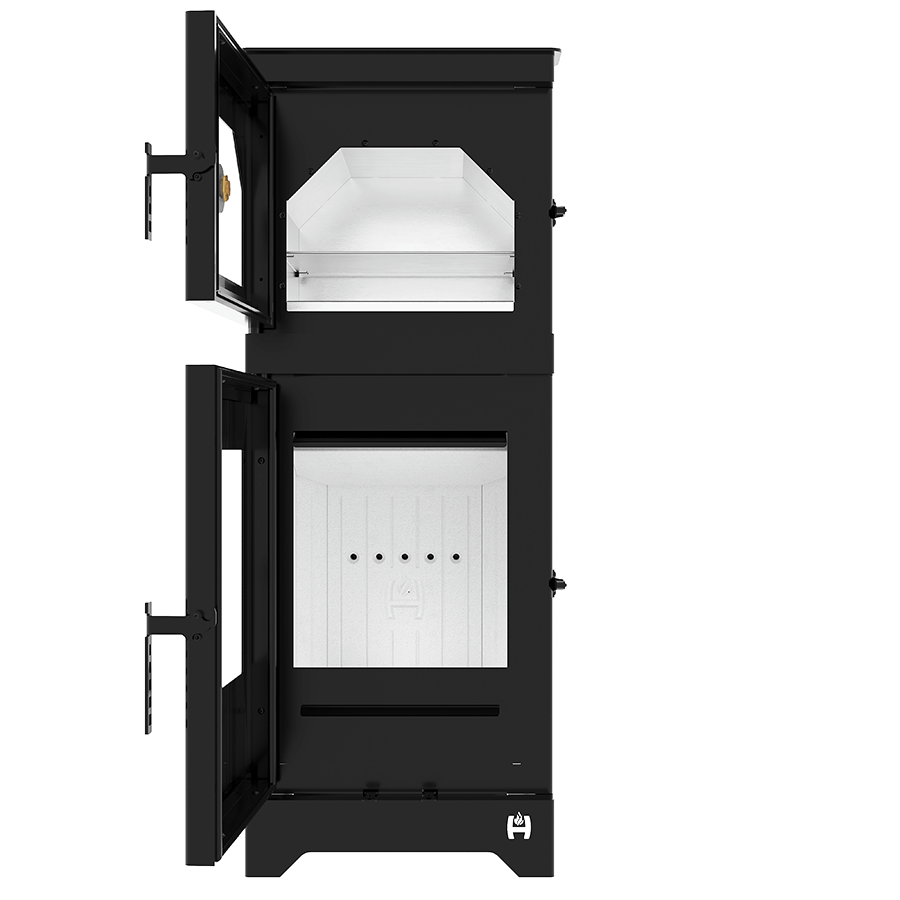 LYNX O ist ein moderner, kompakter freistehender Kamin mit zusätzlichem Ofen, der sich perfekt als Wärmequelle und stilvolle Inneneinrichtung eignet. Dieser Ofen kann nicht nur in offenen Räumen, sondern auch in Wandnischen installiert werden und bietet so größere Gestaltungsmöglichkeiten. Darüber hinaus garantiert LYNX O eine hohe Holzverbrennungseffizienz und bietet eine ökologische und wirtschaftliche Heizlösung.