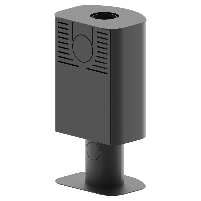 Der Schornsteinkörper besteht aus P265GH-Kesselblech, das ideale Eigenschaften für diese Art von Anwendung aufweist und den freistehenden Herd REGO langlebig und widerstandsfähig gegen große Temperaturschwankungen macht.
