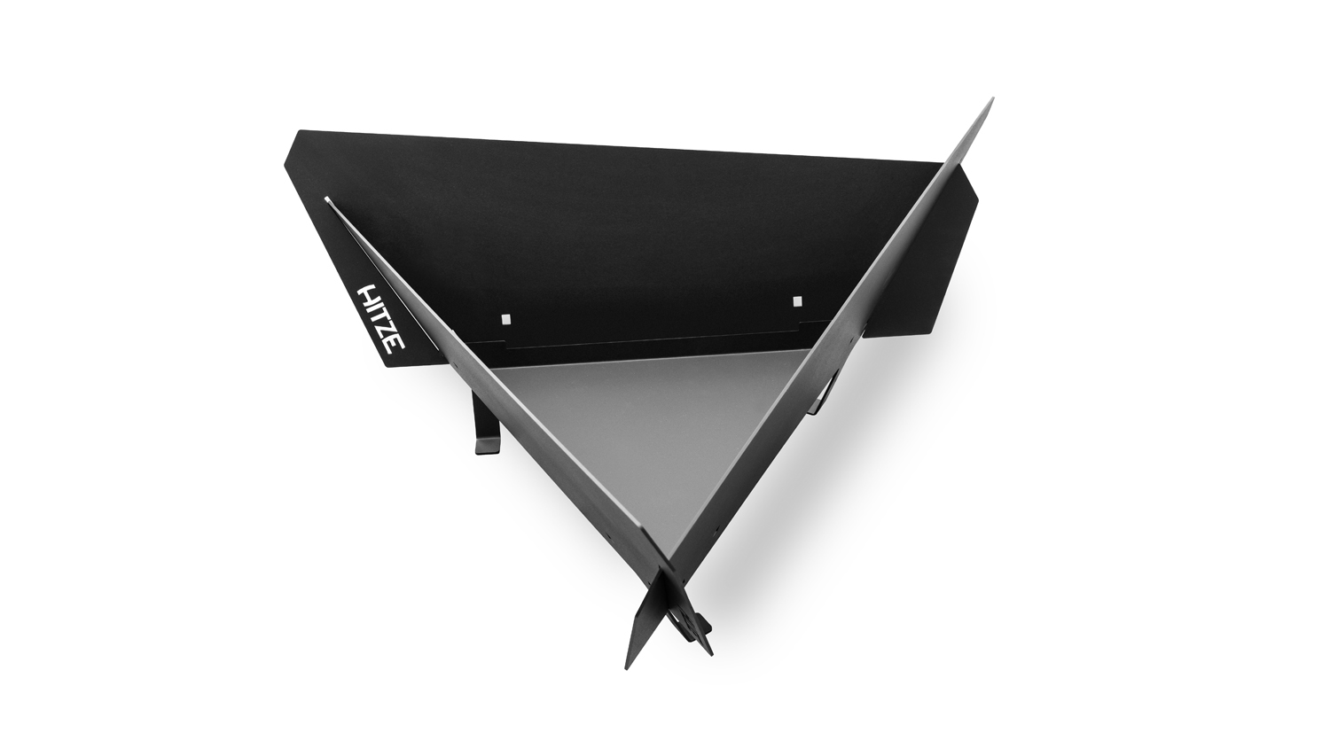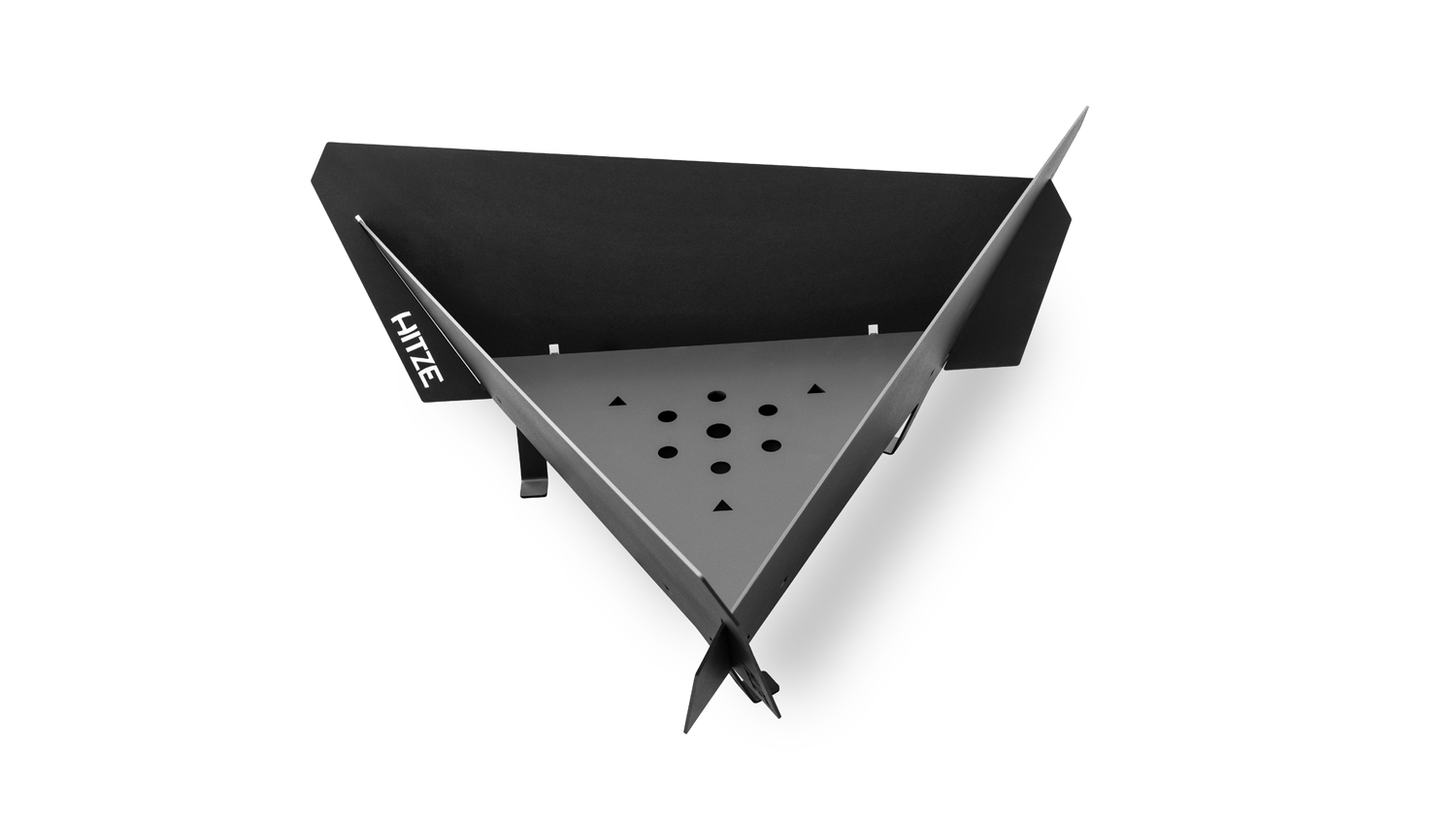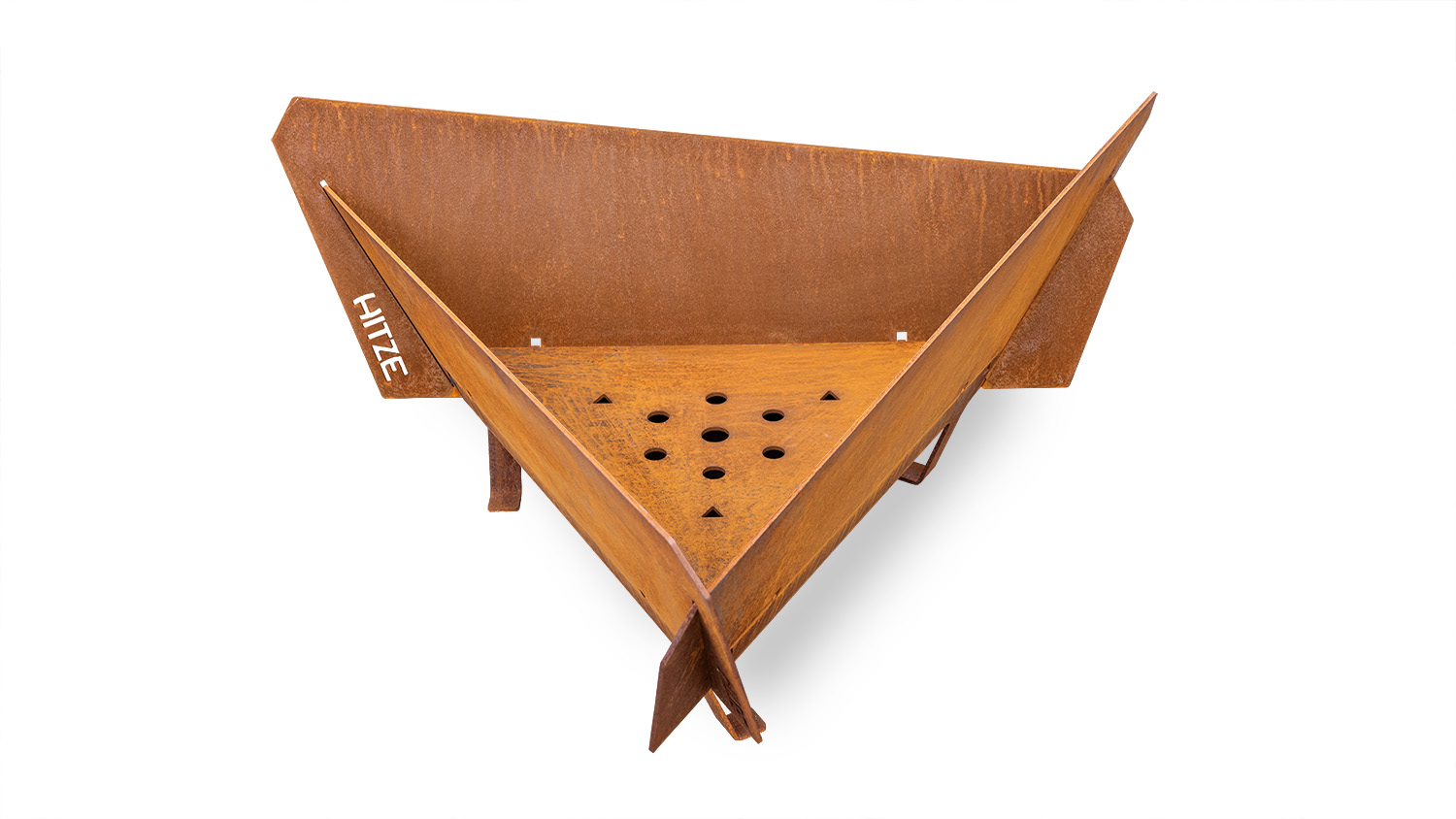 Lumbre ist unkonventionell Gartenkamin mit einer dreieckigen Form, die sich perfekt als moderne Feuerstelle eignet. Das geometrische Design und hohe Wände erleichtern den Prozess des Feueranzündens und begrenzen die Möglichkeit, Asche und Holzreste zu verbreiten.